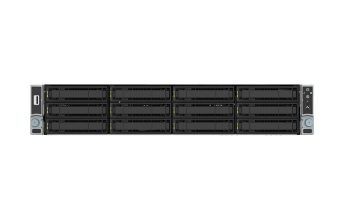 支持 8 或 12 块 2.5/3.5 寸 SAS/SATA 热插拔存储盘位,可选后置 2 块 2.5 寸SAS/SATA 硬盘;