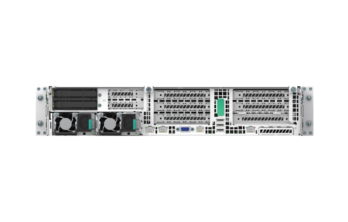 支持 2 个全高全长双宽 PCI-E ×16 插槽,4个PCI-E×8插槽,2个M.2插槽,以及1个专用OCP端口。