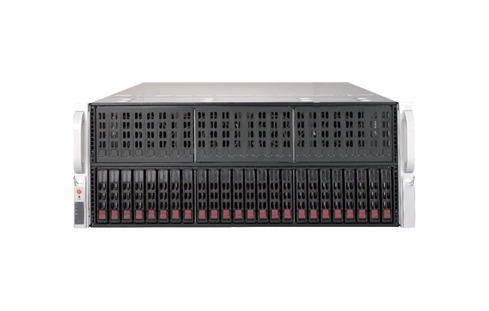 支持 24 块 2.5 寸 SAS/SATA 热插拔硬盘位(其中 2 块支持 NVMe),可选 6 块 3.5 寸SAS/SATA 热插拔硬盘位。