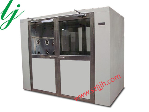 货淋室是货物进入洁净室所必需的通道,它可以减少货物进出洁净室所带来的污染问题。货淋室 的两道门电子互锁,可以兼起气闸室的作用,防未被净化的空气进入洁净室,高科技智能语音货淋室带有语音提示系统,在吹淋时由自动语音系统提示,人性化语音提示给人一种亲切感觉,并达到有效的净化效果,经货淋室 高效过滤器过滤后的洁净气流由可旋转喷嘴从各个方向喷射至物体表面,有效而迅速清除尘埃粒子,带有尘埃粒子的空气再由初、高效过滤器过滤后重新循环到风淋区域。