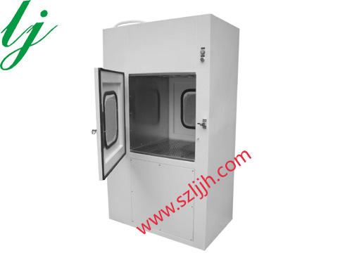 风淋传递窗800是设置在洁净室出入口或不同洁净度等级房间之间,传递货物时阻断室内外气流贯通的装置,以防止污染空气进入较洁净区域和产生交叉污染。风淋传递窗在传递物料时,顶部吹出高速、洁净气流,吹除货物表面的尘粒, 此时,两侧门可以打开也可关闭,洁净气流起到气闸作用,以保证洁净室室外的空气不会影响室内的洁净度。 风淋传递窗的两侧门内侧边装有专用密封条,以确保传递窗的气密性。